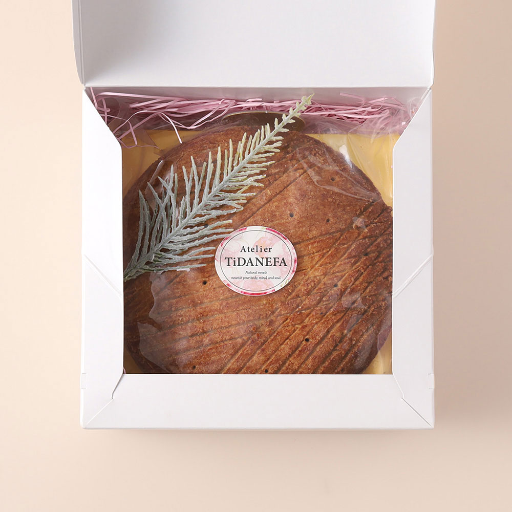 キャラメルのやさしい甘さと香ばしいピーカンナッツを、風味豊かなクッキー生地で包み焼き上げた焼き菓子です。スイスの伝統菓子「エンガディーナヌストルテ」に着想を得て、小麦・乳製品・卵・白砂糖を使わず、植物性素材で丁寧にアレンジしました。信州産ソルガム粉(白たかきび粉)など、丁寧にセレクトした素材を使い、ヴィーガンとは思えない奥深い味わいを実現。キャラメルと生地がほどよくなじんだしっとりとした食感が、素材の魅力を一層引き立てます。ナッツとキャラメルの組み合わせは世代を問わず好まれ、クリスマスやお歳暮、自分へのご褒美にもおすすめです。※本品はペカンを含んでおります。くるみが苦手な方はお控えください。