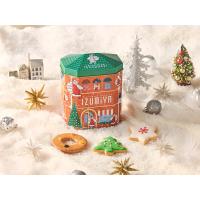 街の中にある家をイメージしたクリスマスデザイン缶に、泉屋定番のスペシャルクッキーズ、クリスマスツリーなどのアイシングクッキー全9種類をアソート