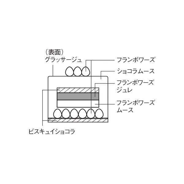 濃厚なショコラムースにフランボワーズムースの程よい酸味がアクセントです。光沢感のあるグラサージュにフランボワーズを飾り、宇宙をイメージしました。※飾りの一部は別添えになります。※飾りの内容が、一部変更になる場合がございます。