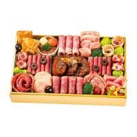 牛タンパイ、牛肉のアッシェパルマンティエ風、ポークパストラミ、合鴨とポークのテリーヌ オレンジ風味、鶏砂肝のコンフィ、ローストポーク、合鴨ひとくちスモーク、ローストビーフ、デミグラスハンバーグ、ミラノ風サラミ、チキンロール、スモークビーフ、豚タンスモークペッパー、生ハム&フルーツキューブ 計14品