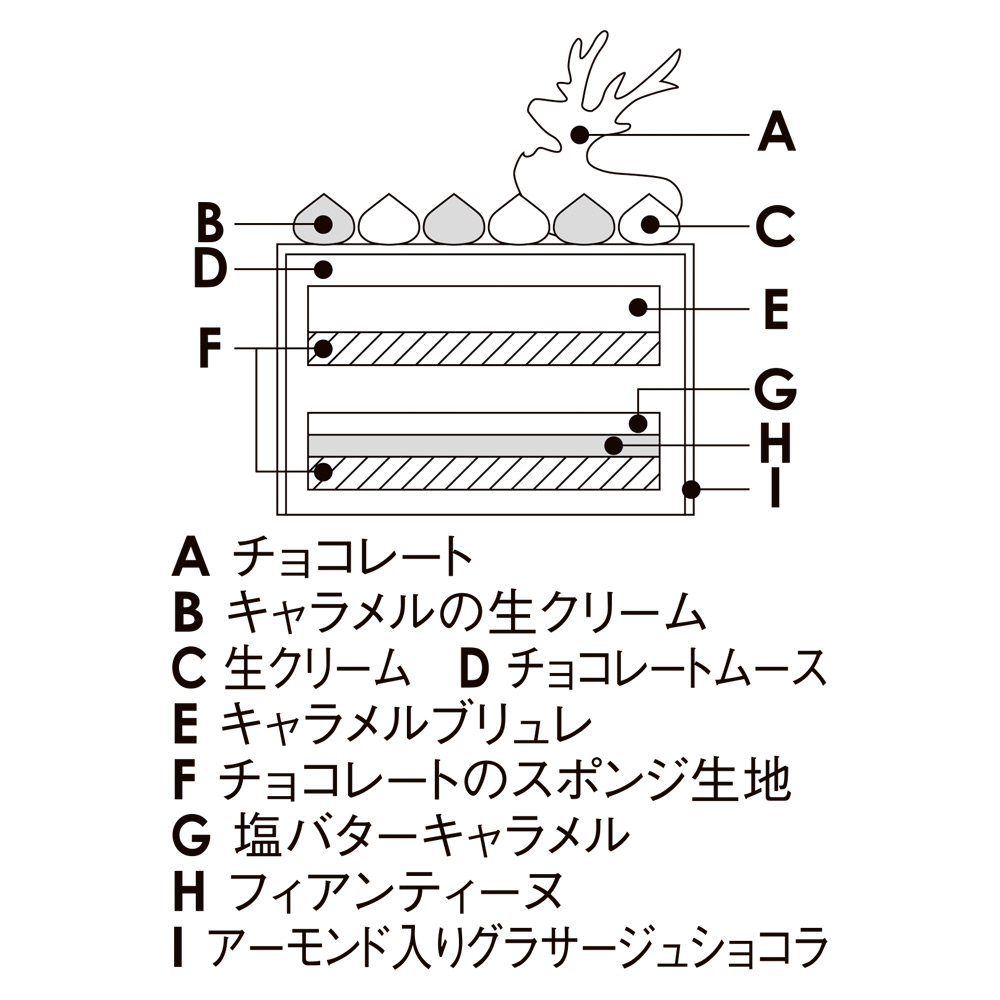 【冷凍便でお届けします。解凍まで時間がかかりますのでご注意ください。】キャラメルブリュレや塩バターキャラメル生地を忍ばせたチョコレートムース。風味豊かな2種の甘さを楽しめる贅沢なケーキです。※飾りは別添となります。※シェフ監修に基づき菓子製造会社に製造委託しているものです。