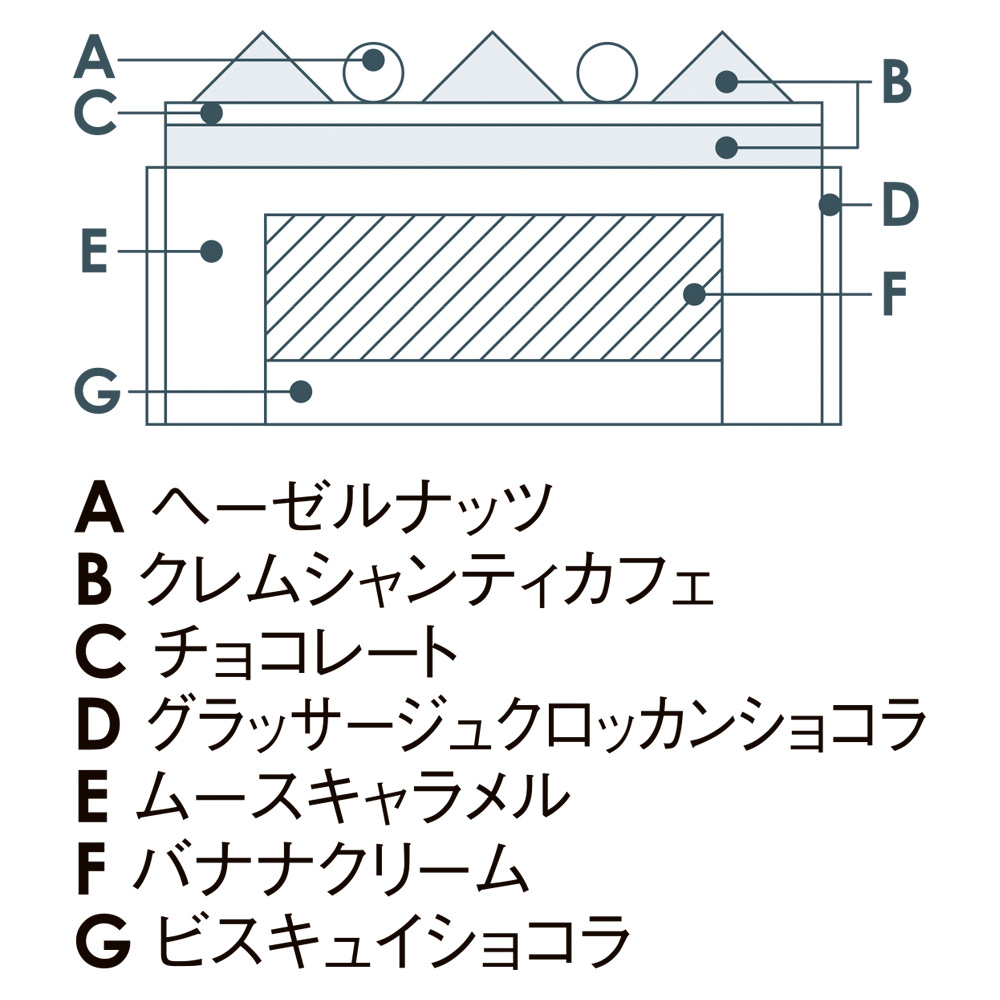 【冷凍便でお届けします。解凍まで時間がかかりますのでご注意ください。】チョコレートに好相性のキャラメルとバナナを重ね、濃厚に仕上げたケーキ。コーヒーとココナッツのアクセントが、ショコラの味わいを引き立てます。