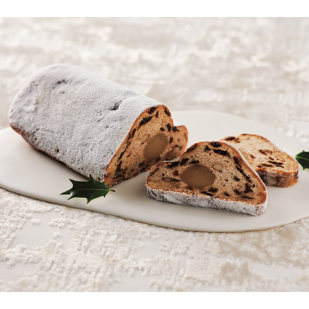 帝国ホテルのレシピで練りあげたコクのあるマジパンとお酒に漬け込んだドライフルーツがたっぷり詰まったドイツの伝統的なドレスデンスタイルです。時間の経過とともに変化する味わいをお楽しみください。※シュトーレンの大きさは、発酵具合によって異なる場合がございます。