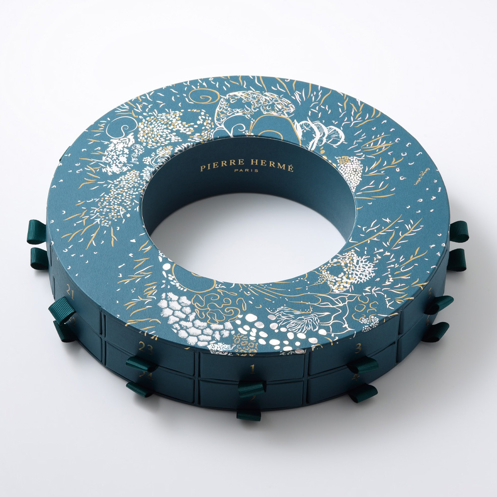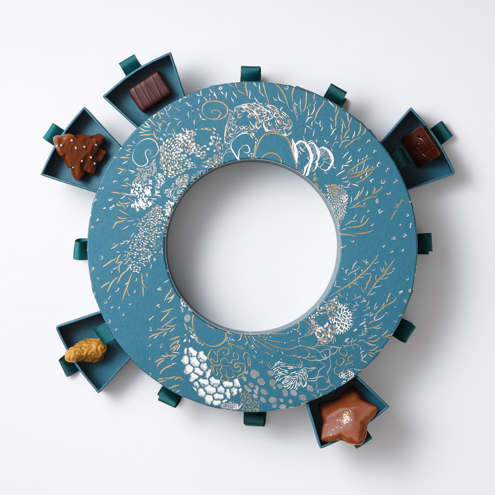 斬新なリング型のデザインをしたアドベントカレンダー。24種類のスイーツをお楽しみください。