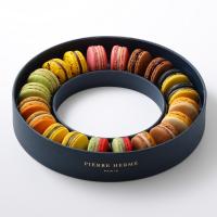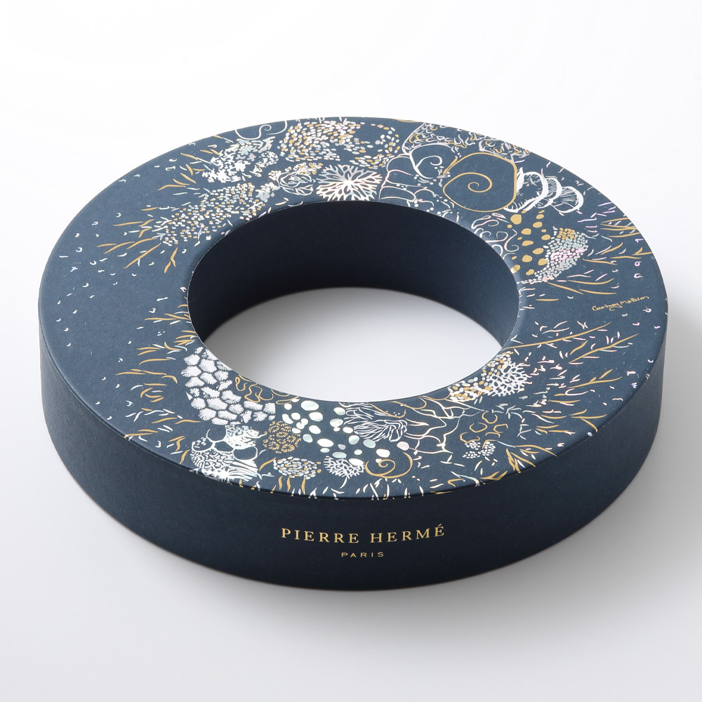 斬新なリング型のデザインをしたボックスに入った、マカロン。洗練されたクリスマス限定のマカロンをお楽しみください。