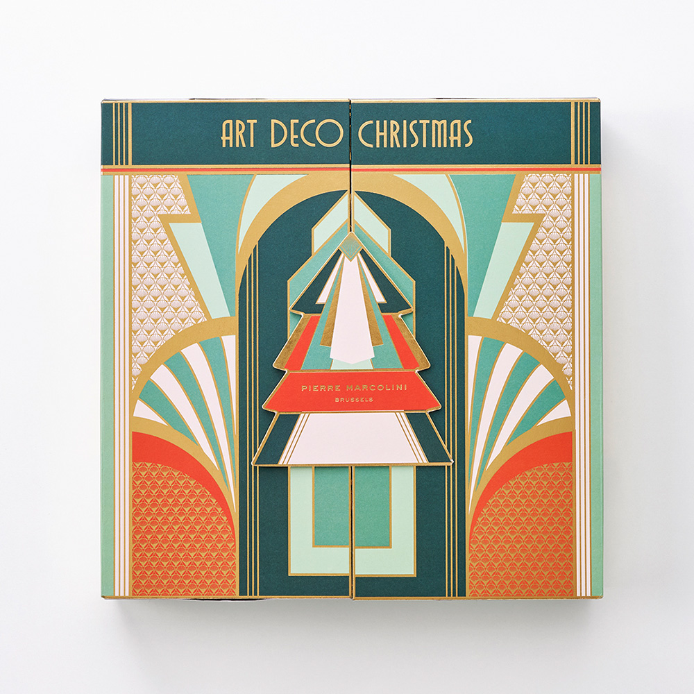 アール・デコデザインのアドベントカレンダーに人気のチョコレートを詰め合わせました。ホリデーシーズンのインテリアとしてもお楽しみいただけます。