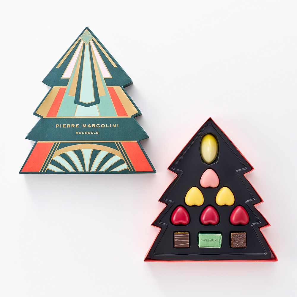 クリスマスツリーをかたどったパッケージに人気のチョコレートを詰め合わせました。ホリデーシーズンのインテリアとしてもお楽しみいただけます。
