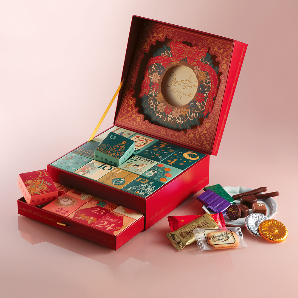 お菓子の世界から飛び出したような世界観。24種の小箱には毎日開けるのが楽しみになる個性豊かなお菓子が入っています。古都ウィーンの洋菓子舗が誇る、華麗で上品な味をお楽しみください。