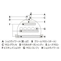 パリ郊外の本店で人気のマロン風味のビュッシュ・ド・ノエル。フランス産マロンをふんだんに使い、本店の味を再現しました。軽やかなムースやマロンコンフィ、ビスキュイショコラを重ね、ラム酒で香りづけしたちょっぴり大人のクリスマスケーキです。