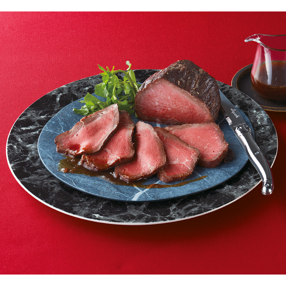 ローストビーフ(モモ肉)250g、ローストビーフソース50g ※肉の仕上りにより形状が異なります。 ※一部の離島・配達不可地域はお届けできません。