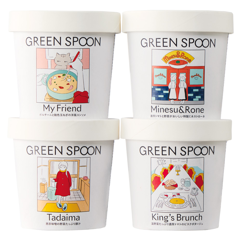 濃厚トマトと野菜がおいしい特製ミネストローネ206g、温野菜たっぷり濃厚トマトのビスクポタージュ182g、ポルチーニと飴色玉ねぎの洋風コンソメ173g、西京味噌の野菜たっぷり豚汁184g ※電子レンジ対応 ※一部の離島・配達不可地域はお届けできません。
