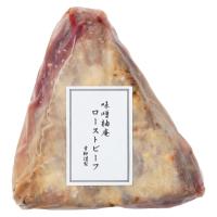 松阪牛のモモ肉を白荒味噌に柚子皮と割り下を合わせた独自の味噌に漬け込み、表面を炭火がほのかに香る程度に焼きました。