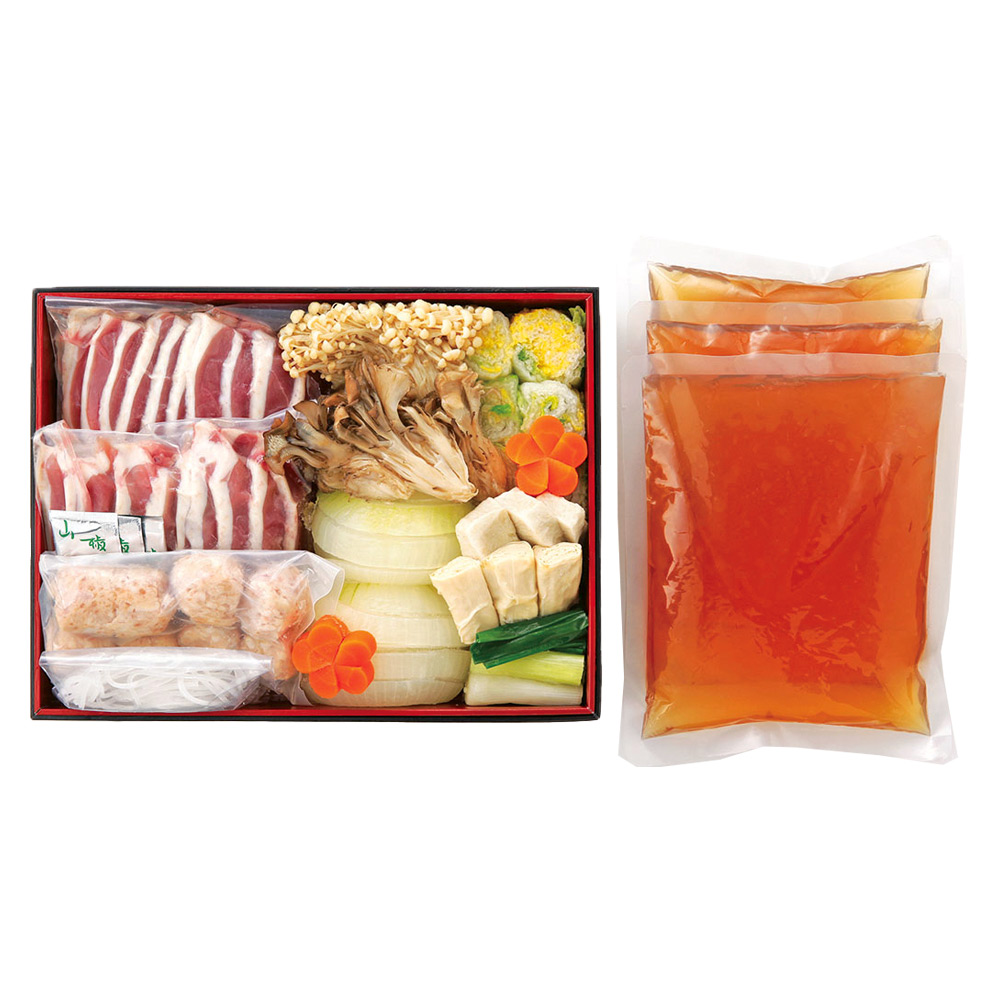 合鴨肉の旨みが凝縮した合鴨ロースやつくねをはじめ、九条ねぎや粟麩など京都らしい食材も入れたセット。