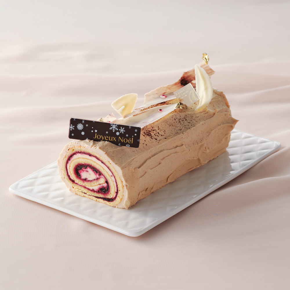 “神聖な夜明け”を意味する「ローブ・サクレ」。フランスの伝統菓子ビュッシュ・ド・ノエルに、マロンクリームの深いコクとカシスの酸味を重ねた奥行きある味わい。特別なデコレーションに、聖夜の希望を込めました。