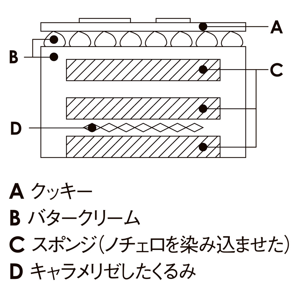 ロングセラー「リングターツ」をオマージュ。北海道産生乳のバタークリームと、くるみを忍ばせたカステラ風スポンジの組み合わせに懐かしさが漂います。