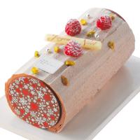 【冷凍便でお届けします。解凍まで時間がかかりますのでご注意ください。】薪をかたどったクラシックなビジュアルに、フランボワーズの鮮やかなレッドがアクセント。口に運ぶたび、ショコラクリームのまろやかなコクとフランボワーズの甘酸っぱい酸味が広がります。
