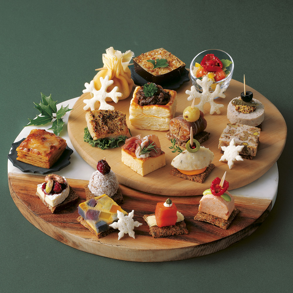 クリスマスに16種類のフィンガーフードオードブルを。〈ソースマジック〉の個性豊かで彩り華やかな料理は、食材、調理方法にこだわって仕上げています。