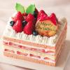 ラズベリーシロップを混ぜたピンクのスポンジが華やか。たっぷりの生クリームと苺のスライスをサンドし、自家製苺ジャムを塗ってアクセントにした軽やかな口あたりのショートケーキです。