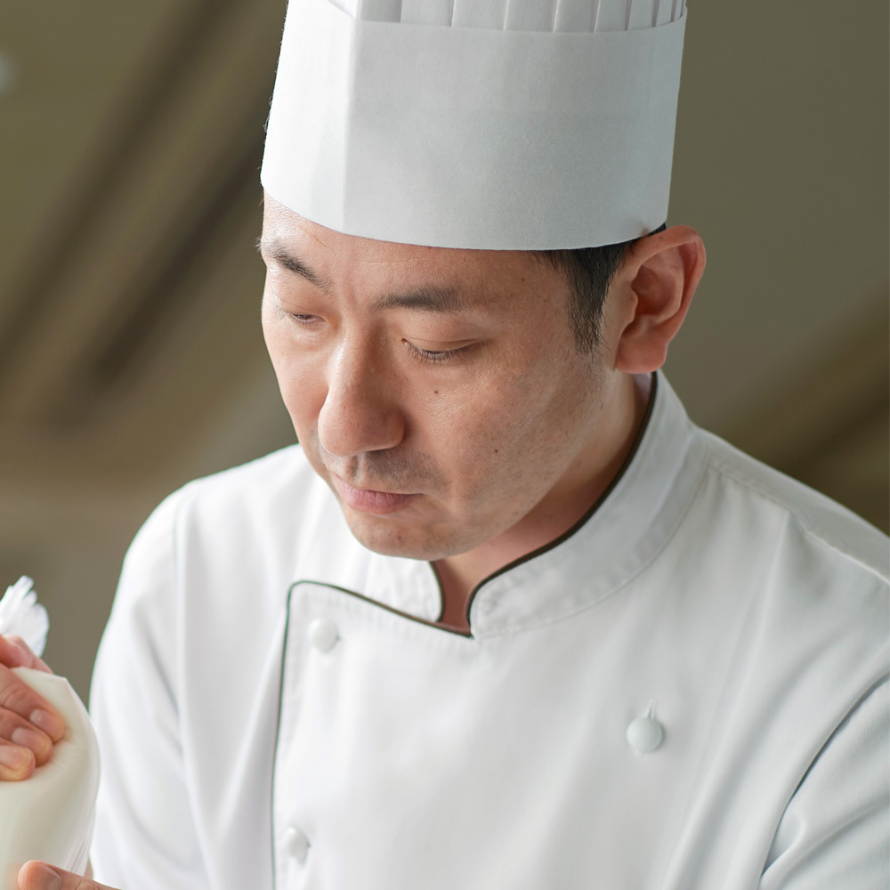 齊藤 雅之氏:2000年、ロイヤルパークホテル入社以来、新感覚のケーキやデザートを次々と生み出し、社内外のスイーツコンテストで多数の受賞に輝く。2018年シェフパティシエに就任。