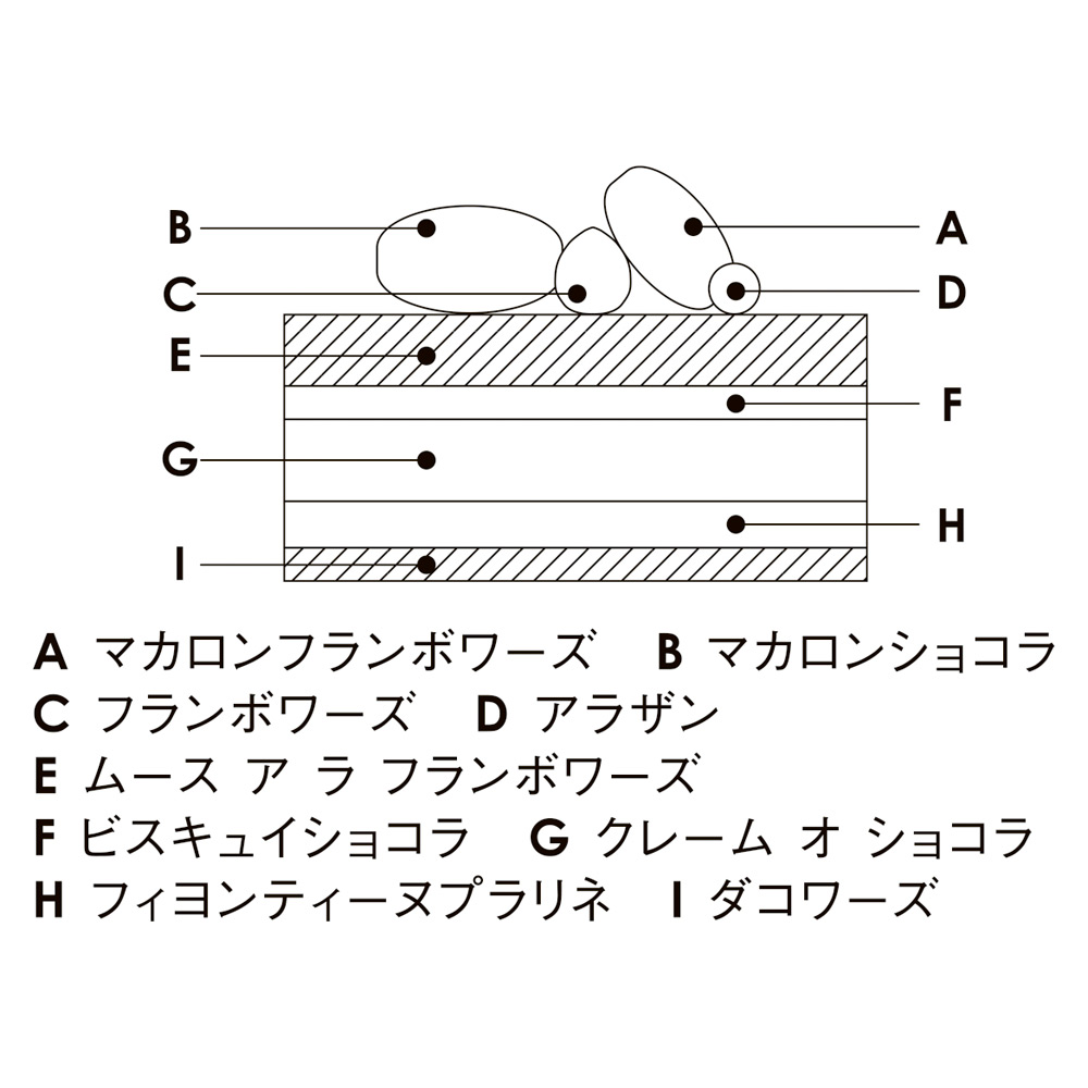 口どけなめらかなショコラクリームとフランボワーズのフルーティーな酸味を閉じ込めた、見た目も味わいも、クリスマスらしいケーキ。サクッとしたフィヨンティーヌの食感に、プラリネのコク深い層とムースの柔らかさとのコントラストが楽しい聖夜限定の一品です。