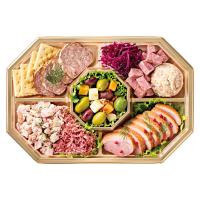 自家製コンビーフ、青森県産バルバリー種鴨ロースのマリネ、紫キャベツの酢漬け、ビアサラミのレモンマリネ仕立て、オリーブ、チーズ3種、スモークベーコンのクリームチーズ和え、コンビーフマッシュポテト、パテ・ド・カンパーニュ、クラッカー