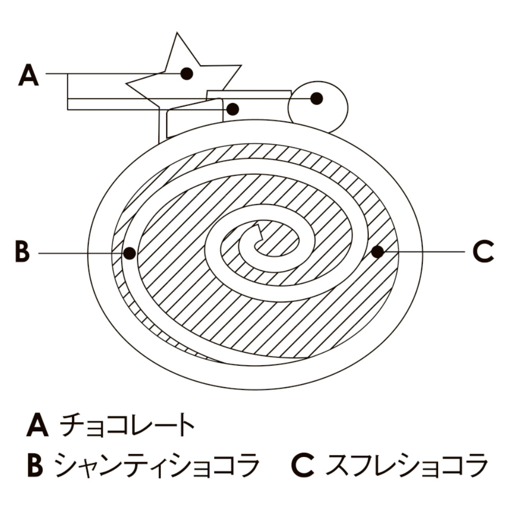 ふわふわでしっとり、さらにもっちりした食感のスフレショコラに、カカオの個性が際立つ軽快なチョコレートクリームを合わせました。まるで絵本の1ページを切り抜いたような世界観に仕上げた、王道のケーキです。
