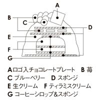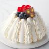 ティラミスクリームとスポンジに苺を重ね、メレンゲと生クリームで包みました。トップには苺とブルーベリーを飾った、やさしい味わいのドームケーキです。