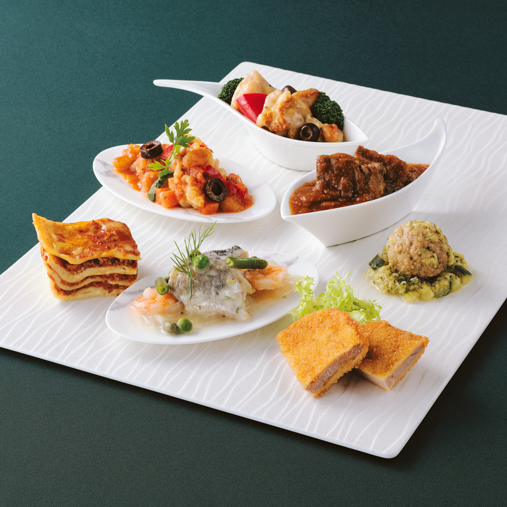 仔牛のカツレツやミートソースのラザニアなど、イタリア・ミラノ本店でも人気のメニューを詰め合わせに。