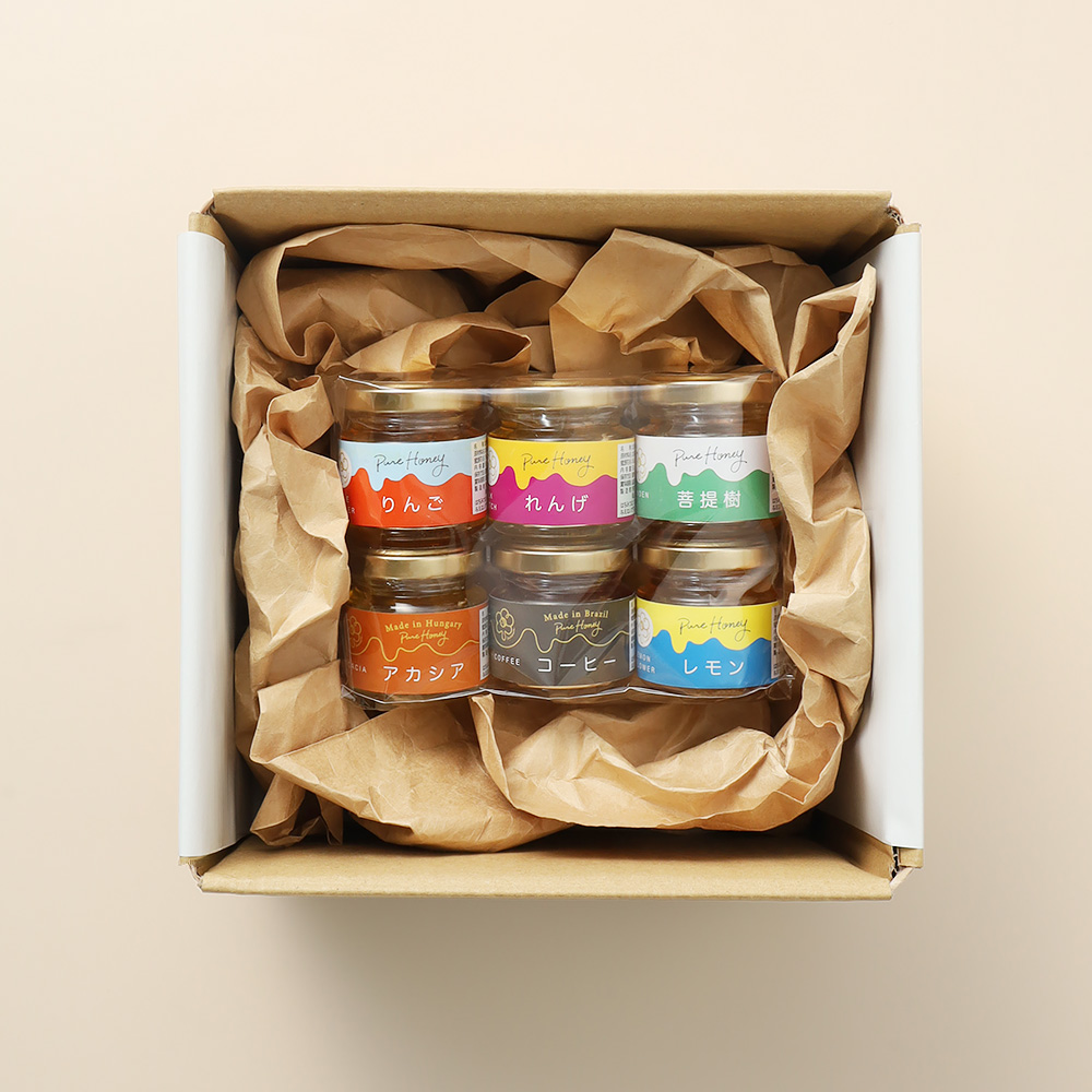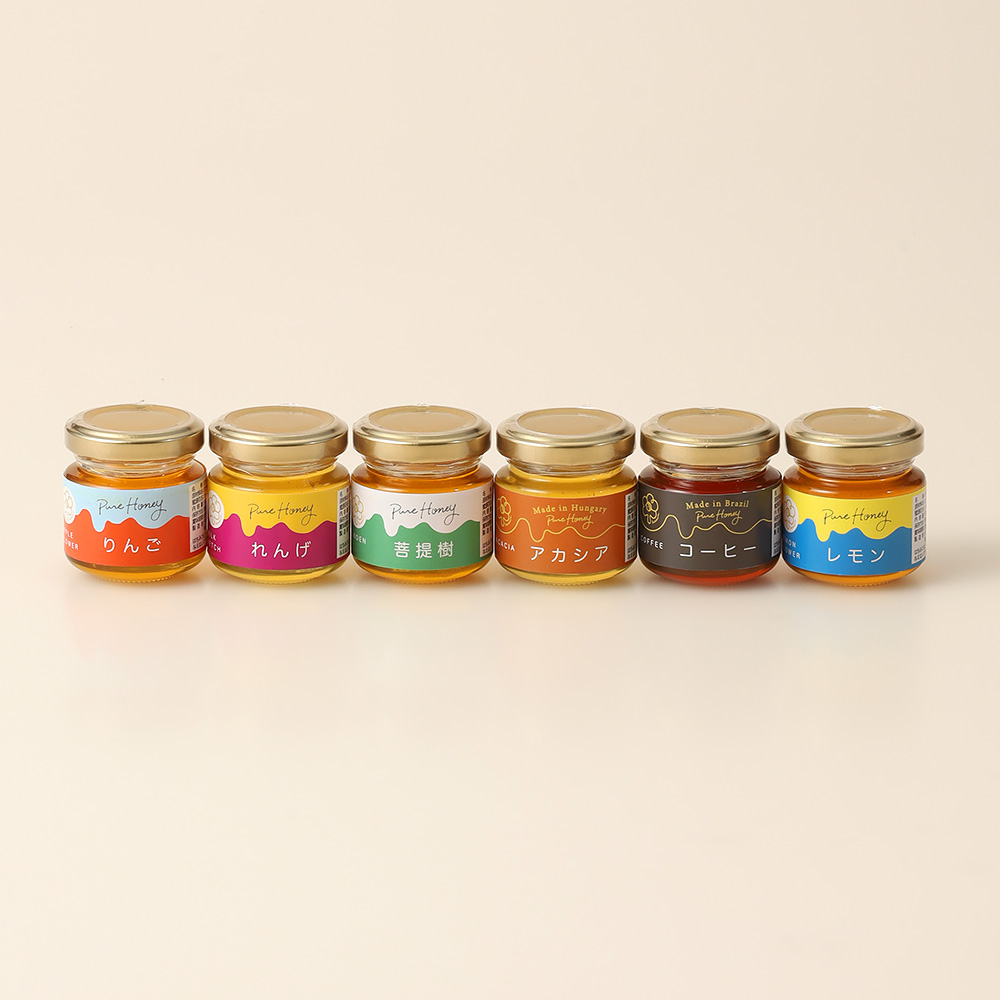 国産れんげ蜂蜜50g×1本、国産りんご蜂蜜50g×1本、国産菩提樹蜂蜜50g×1本、ハンガリー産アカシア蜂蜜50g×1本、スペイン産レモン蜂蜜50g×1本、ブラジル産コーヒー蜂蜜50g×1本