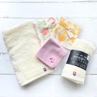 スリムバスタオル:愛媛県今治産のパイル&ガーゼの2層構造で、柔らかく、またサイズも幅が短いので扱いやすいです。ハンカチ:愛媛県今治産で吸水性と風合いが良く、肌触りも柔らか。可愛いワンポイント刺しゅうを施しております。ふきん:レーヨンならではの柔らかさ、生地目の粗い平織りなので汚れも取れやすく、吸水性もあり、乾きも早いです。バラ柄とみかん柄がプリントされた可愛いデザインです。