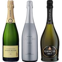 ノミネ・ルナール・ブリュット/シャンパーニュ・ノミネ・ルナール(シャンパーニュ)×1本(750ml)、プロジェクト・クワトロ・カヴァ/クロ・モンブラン(スパークリングワイン)×1本(750ml)、ブリュット/ガンチア(スパークリングワイン)×1本(750ml)