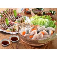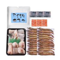 ふぐちり(シロサバフグ切身、トラフグアラ)200g、車海老(刺身用)200g×2、ふぐちりスープ300g、ふくポン酢10g×3、もみじおろし10g×3