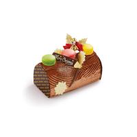 チョコレートクリームと、ヘーゼルナッツとアーモンドのジャンドゥヤをサンドしました。カラフルなマカロンが楽しい薪の形のクリスマスケーキ