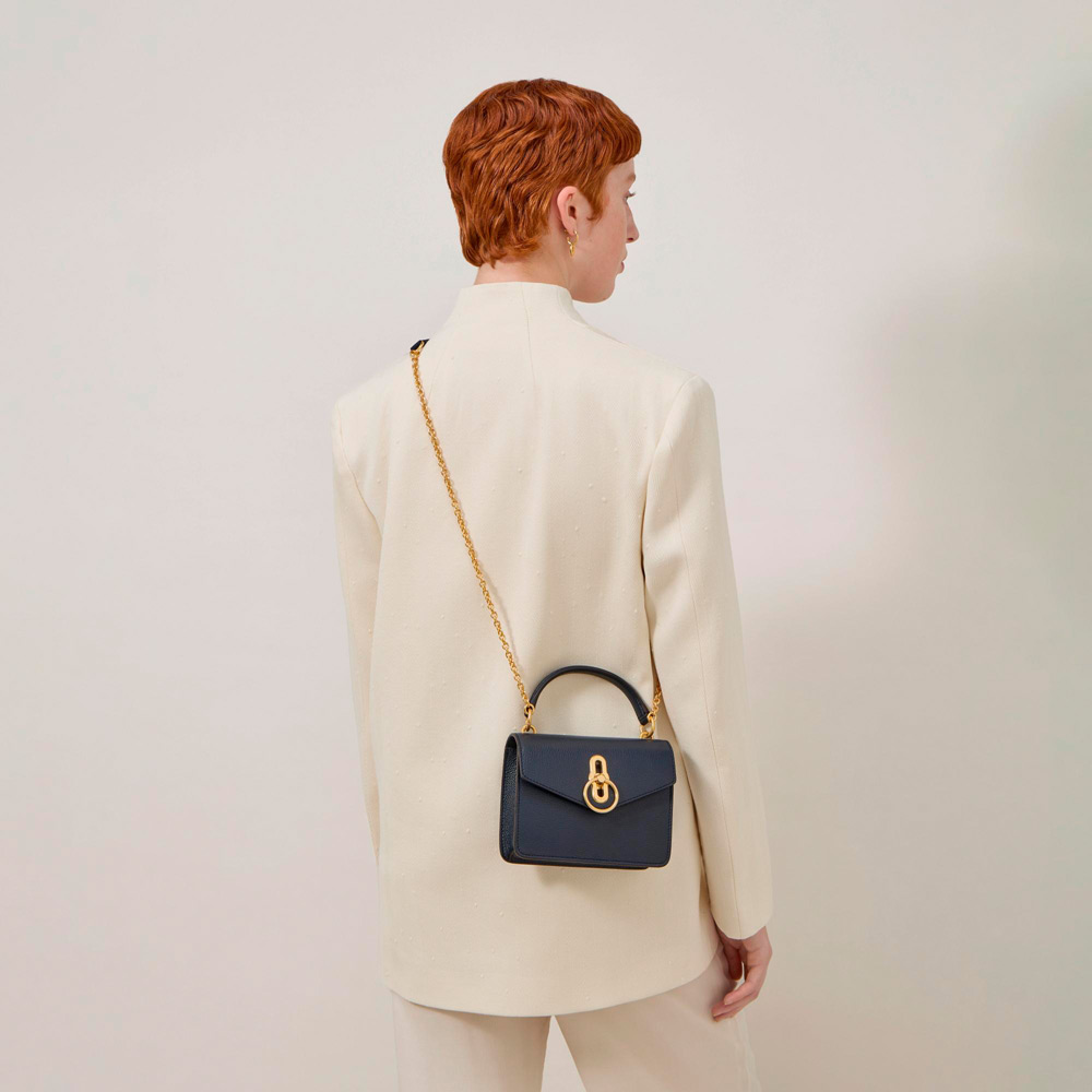 なだらかな緑の丘が広がる英国の田園風景にインスピレーションを得てデザインされたアンバリー。伝統的な馬具をモチーフにしたスタイルやディテールが光ります。アンバリーをエレガントで洗練されたスタイルにアレンジしたコンパクトなクロスボディモデル。幾何学的なライダーズロックの留め具があしらわれており、斜め掛けにしてハンズフリーで持ち歩けるほか、手に持ってハンドバッグとしても使用できます。