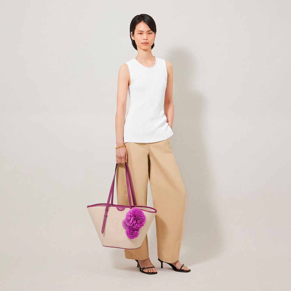 丹念に手作業で織り上げた生地がラフィアを思わせる、ビーチで過ごす一日にぴったりのバスケット トート。手作りのダリアのポンポンとギボシ留め具のディテールが印象的なデザイン。ショルダーストラップは長さを調整でき、様々なスタイリングをお楽しみいただけます。素敵なものをいっぱい詰め込んで、マルベリーとピクニックへ出かけませんか。