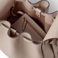 スモールサイズのライラ バケットを日々のコーディネートに取り入れて、さりげなくセンスが光るデイリースタイルを演出。タイムレスに使えるミニマルなデザインで、3本のベルトループがエレガントに際立ちます。小ぶりのトートバッグとして手に持ったり、肩にかけたりと様々なスタイリングができるため、街歩きの楽しさもより一層アップ。
