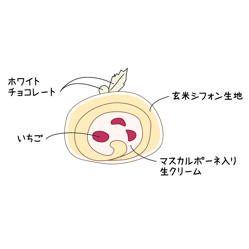 京都〈宮本ファーム〉の玄米粉や〈ヒグチ養蜂園〉の百花蜂蜜、〈みずほファーム〉の黒豆卵など、京都産の食材を贅沢に使用したシフォン生地のビュッシュ。