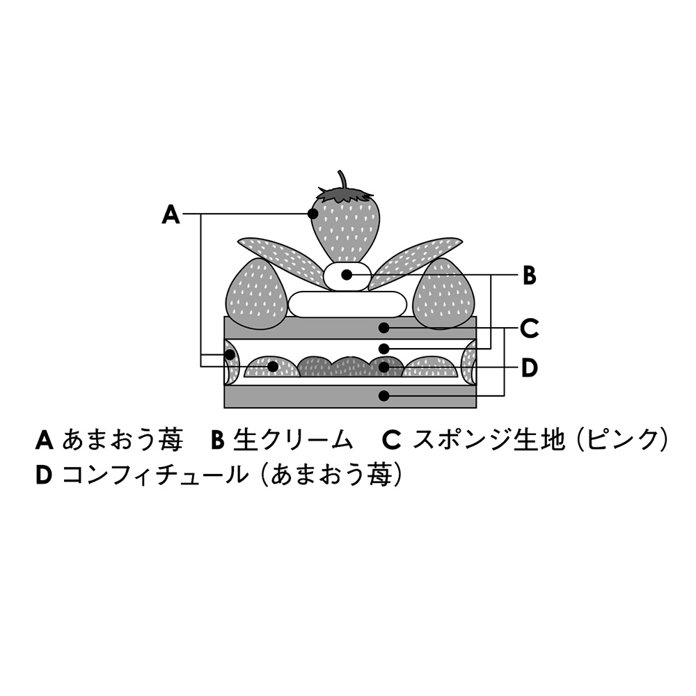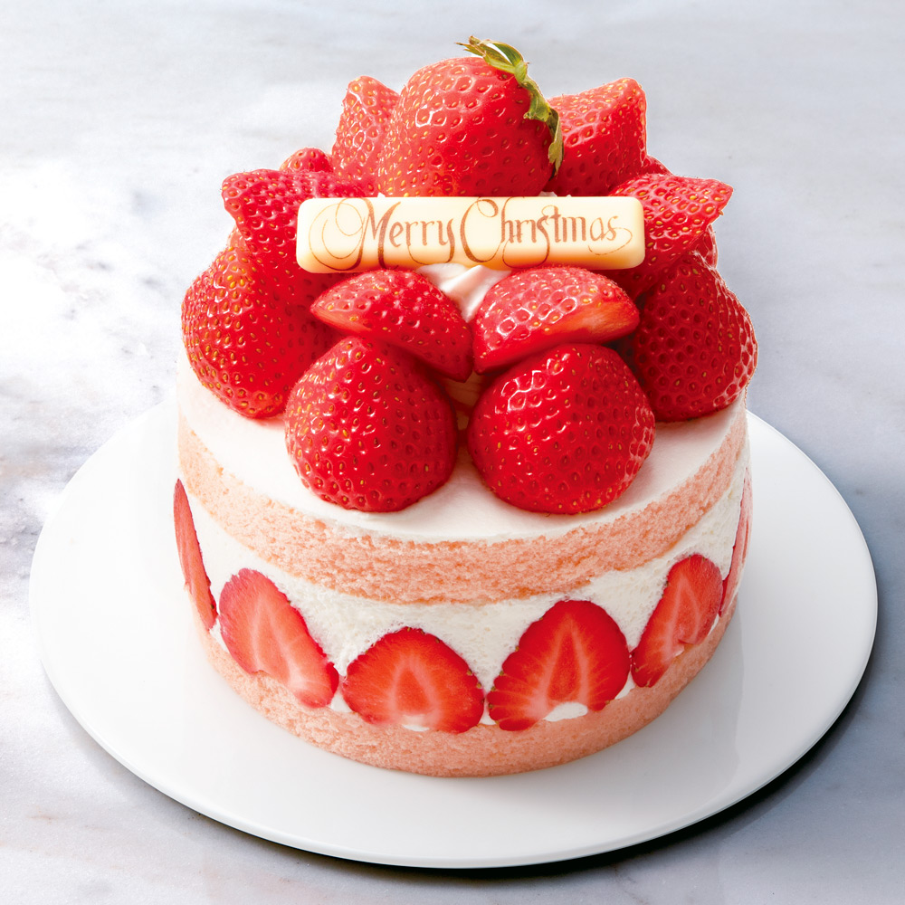 この時期稀少な「あまおう苺」を贅沢に使用。生地の中にも、“あまおう苺のコンフィチュール”を忍ばせた、定番クリスマスケーキ。
