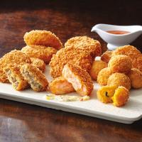 ぷりぷり食感が魅力の海老カツ、トマトソースで楽しむ蟹クリームコロッケなどをセットに。電子レンジで揚げたてのようなおいしさ。
