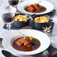 大きめの牛肉がゴロっと入ったビーフシチューと、エビと帆立の旨みが楽しめるシーフードグラタン。召しあがりやすい少量サイズです。