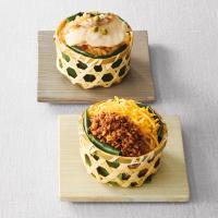 懐石料理を締めくくる飯蒸し。牡蠣や鯛、牛肉を使った3種をセットにしました。