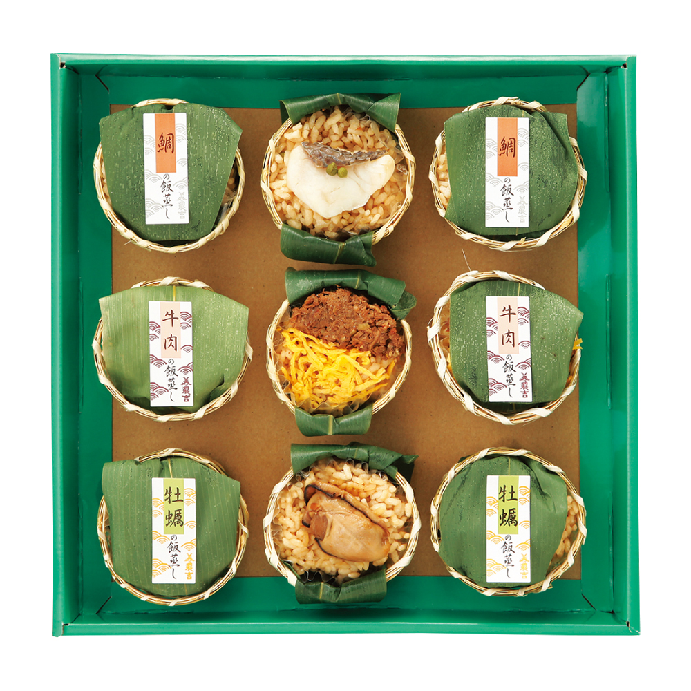 牡蠣の飯蒸し・牛肉の飯蒸し・鯛の飯蒸し各70g×3 ※電子レンジ対応 お届け時期:11月9日から