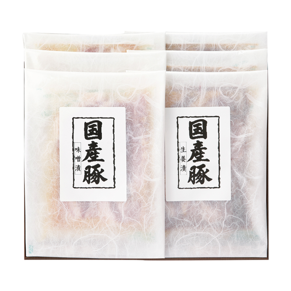 国産豚肉味噌漬(1袋2枚入)100g・国産豚肉生姜漬(1袋2枚入)110g各3 ※電子レンジ対応※電子レンジで加熱調理してからお召しあがりください。