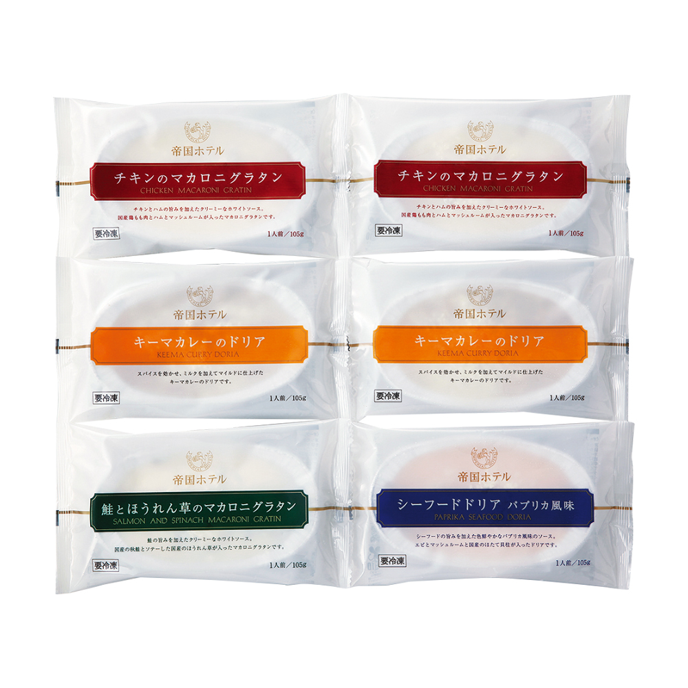 チキンのマカロニグラタン・キーマカレードリア各105g×2、鮭とほうれん草のマカロニグラタン・シーフードドリア パプリカ風味各105g※オーブントースター専用