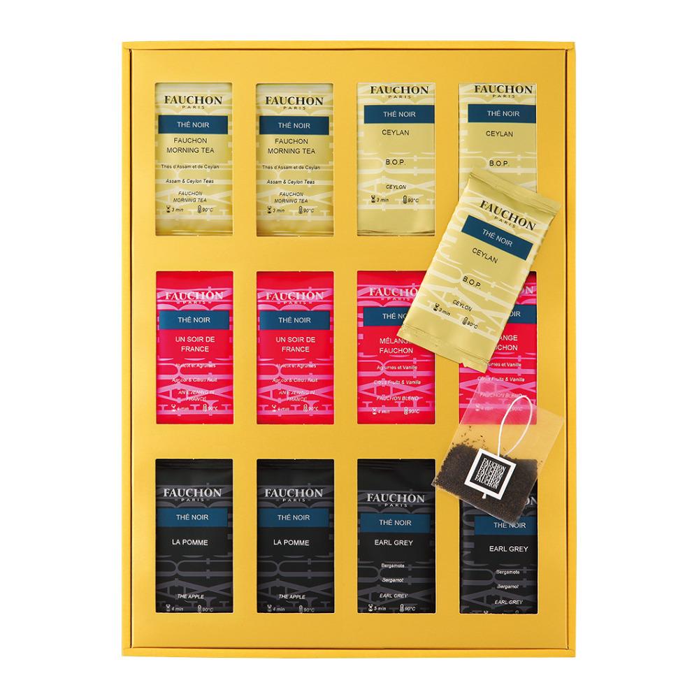 「フォションブレンド」、「アップル」など、フォションを代表する味わいのティーバッグの詰め合わせ。