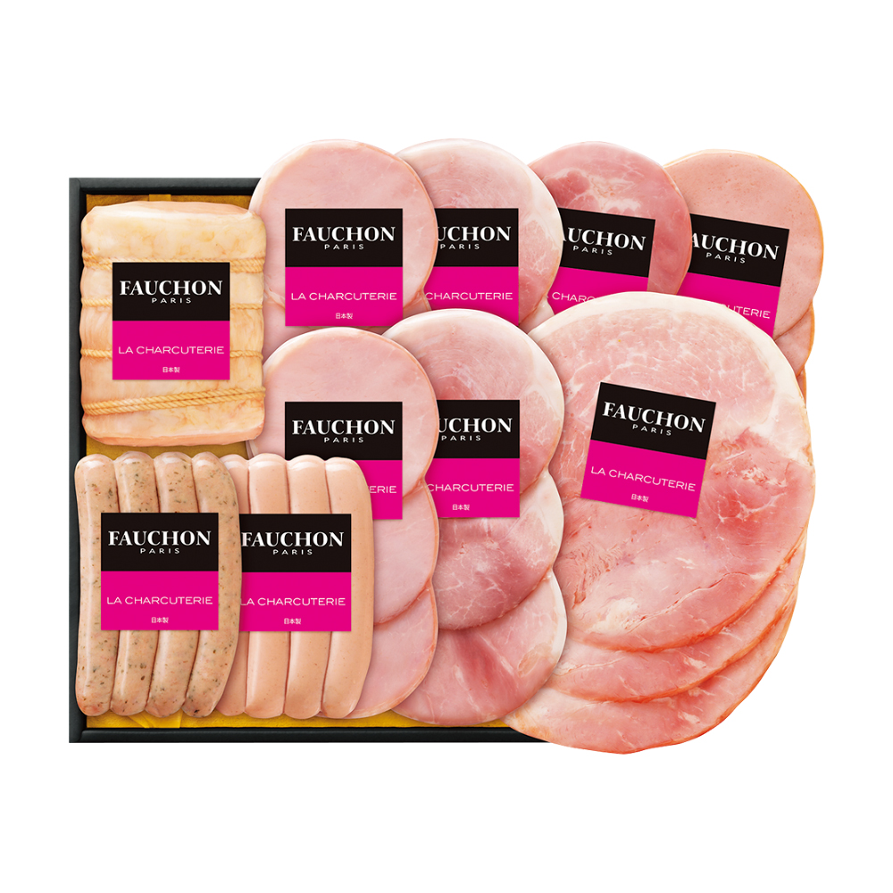 ホワイトロースハム350g、ホワイト肩ロース53g、ホワイトロースハム・ホワイトボンレスハム各53g×2、ジャンボン・ド・パリ190g、ボロニアソーセージ55g、ホワイトウインナー・ハーブ入りウインナー各120g