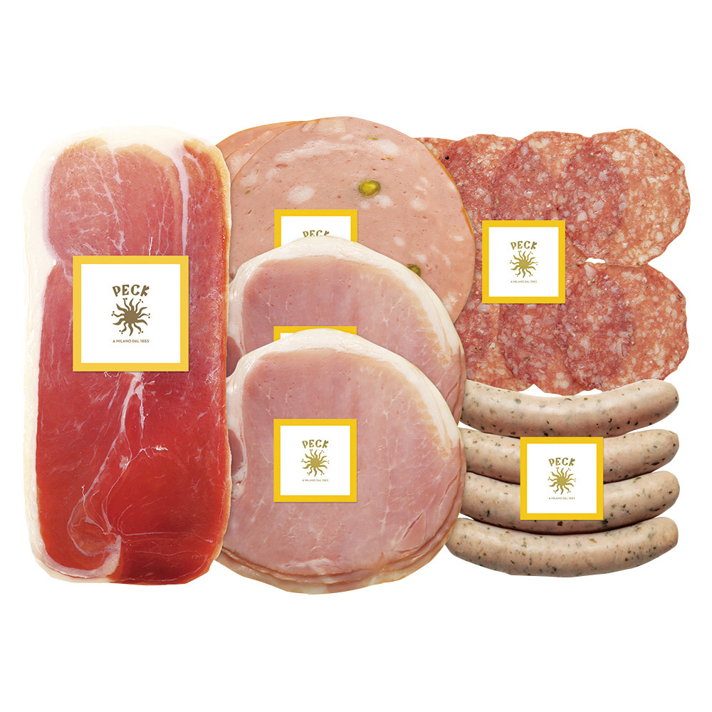1883年創業以来、ミラノの美食を支えてきたペックの食材。上質な味わいのハムやソーセージのセットです。
