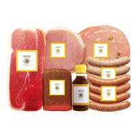 ローストビーフ110g、カルネソース115g、プロシュット(生ハム)30g、ロースハム51g、モルタデッラ54g、ハーブソーセージ・レモン&パセリウインナー各92g 原料原産地:牛肉(オーストラリア)