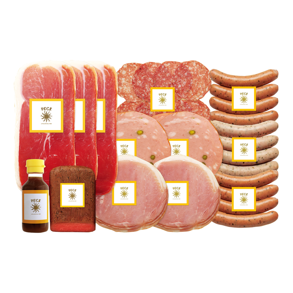 ローストビーフ110g、カルネソース115g、プロシュット(生ハム)30g×3、ロースハム51g×2、モルタデッラ54g×2、ハーブソーセージ92g×2、レモン&パセリウインナー92g、熟成サラミ28g 原料原産地:牛肉(オーストラリア)