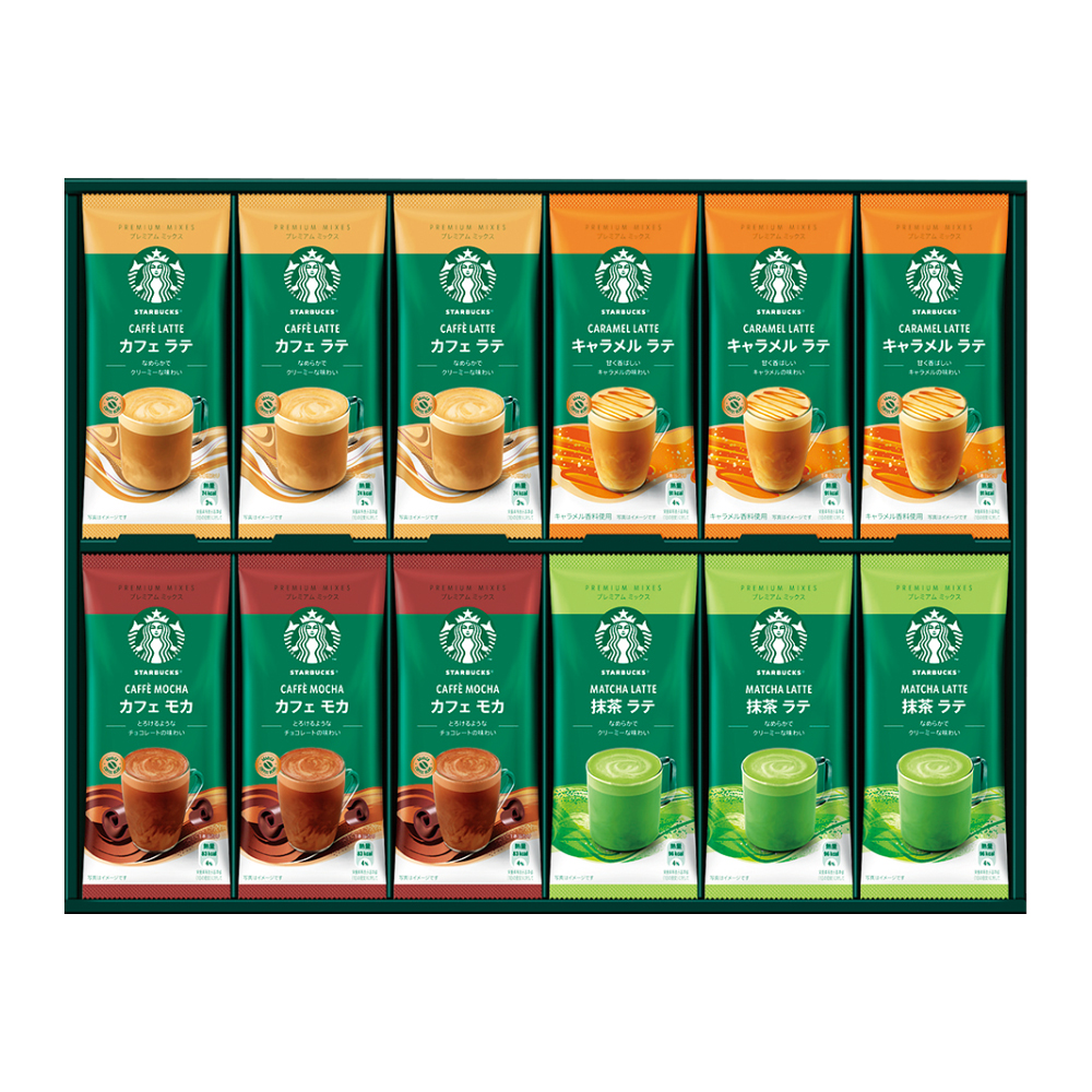 カフェラテ・キャラメルラテ・抹茶ラテ・カフェモカ 各6 計24